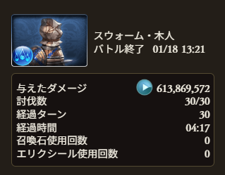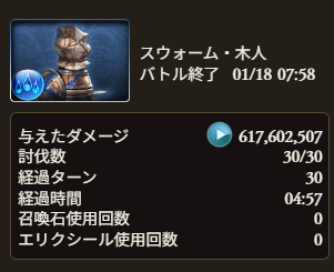 ※ 騎空士によって強化度合いが異なるため、編成後は Menu > トライアルバトル > スウォーム・木人(土属性)でテストすると◯