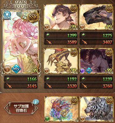 サブに入れるかさらにサブに入れるかは、召喚石の攻撃力で選ぶ。