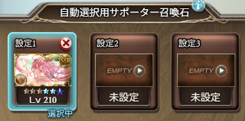 フルオート時設定:クイック召喚オン、ガードオフ、奥義の発動”温存”にセット