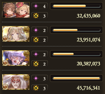 ダメージ上限システムのため、奥義D上限や奥義与ダメが上がるアルボス拳やガレヲン銃のほうが、ただ攻刃を増やすより奥義ダメージが出る
