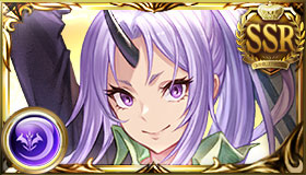 シオン(転生したらスライムだった件コラボ):リムル=テンペストと一緒に編成すると、闇属性ダメージ+攻撃DOWN(累積)/連続攻撃確率DOWN(累積)を付与。リムル=テンペストが相手弱体効果無効をディスペルしてくれるので、デバフを切らさず与えられる