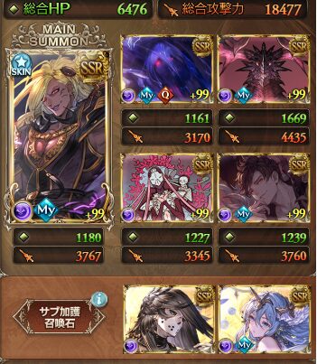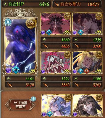 召喚石はメイン・サブ共にセレスト・マグナ。どちらかをルシフェルLv250にしてもいい。